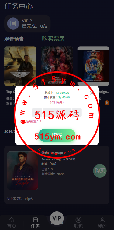海外多语言电影任务系统/电影投资刷单源码