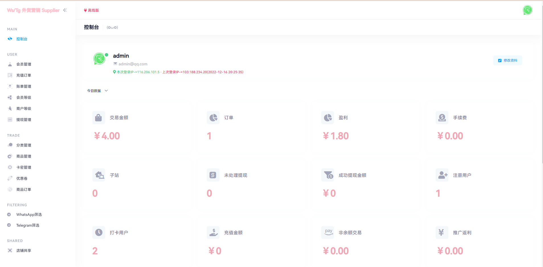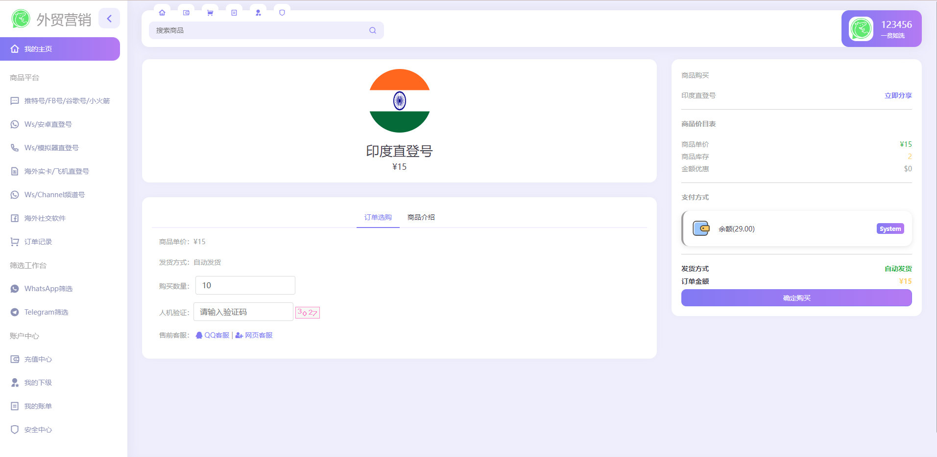 1.后台上传各种账号前台可以下单购买